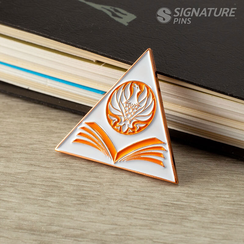 Instead of including an emblem at the center of a round pin, this soft enamel design is cut in the shape of the actual logo. Using a custom shape pin design is a great way to make the most out of all the available space.