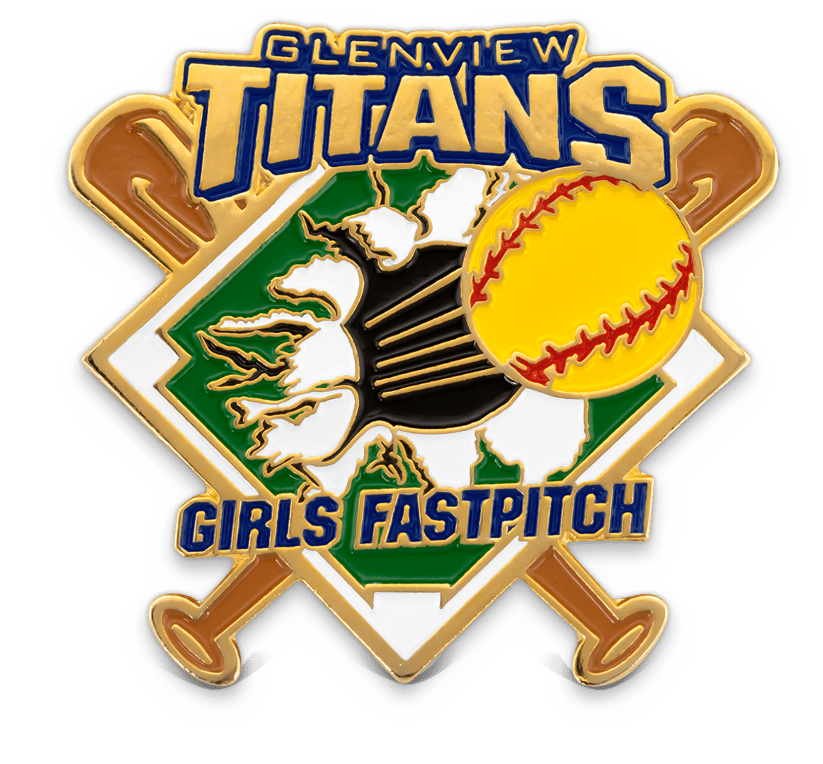 Creating a custom shaped pin is one of the best ways to make a memorable design. The bright gold and red of this design really make an impact, but the secondary colors help define the artwork as well.
