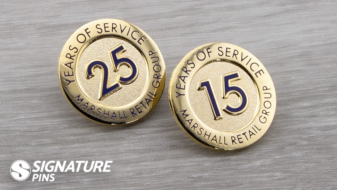 Years of service pins are handed out as a sign of appreciation to the employees that make a company great. Cloisonne pins have a more refined quality that increases their perceived value and makes them an extra special gift.